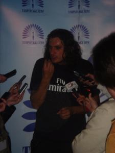 Днем свою пресс-конференцию устроила еще одна «мегазвезда» - Руслана. Точнее, это мероприятие она презентовала, как акцию по борьбе с пиратством – такой себе удачный пиар-ход с пиратами в костюмах и демонстрированием Интернет-ресурсов. При всем уважении к Руслане, возникает впечатление, что певица уже не знает, как привлечь к себе внимание. Это чувствовалось и в выступлении: и будто шоу, и будто бабла вбухали – костюмы, реквизиты, балет (кстати слабенький) и на гитаре она поиграла, и на барабанах, но, ну как-то души нет.