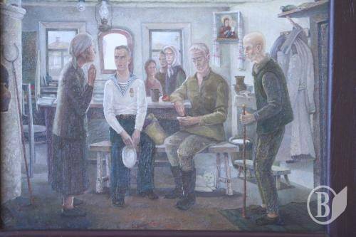Це картини військової тематики. Зокрема «Мати чекає солдат з війни», портрет у військовий формі.