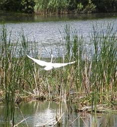 Вона так гордо і звисока оглядала озеро, немов висока дівчина. Для іще більшої зверхності чапля періодично оглядала свої володіння, облітаючи водойму.