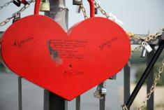 Ось таке чудо з'явилося у нас на пішохідному мості через Десну. Зупиняються всі. Читають і смикають замки :).