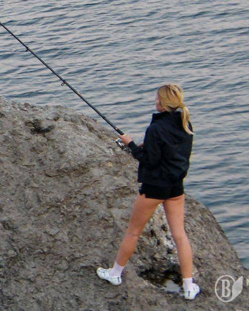Дівчата на риболовлі - незвичайне і приємне видовище. А хіба не романтично зхрестити отак вудки, та на фоні президентської дачі?