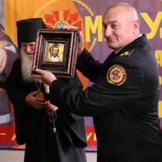 Епископ Черниговский и Нежинский по случаю дня иконы"Неопалимая купина"и государственного праздника Дня спасителя провёл праздничную литургию, оросив личный состав и боевую технику.
