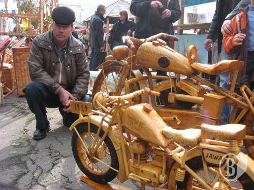 Однією з родзинок рукотворного мистецтва стали на ярмарку дерев’яні сувенірні мотоцикли, виготовлені жителем села Іржавець Ічнянського району Чернігівщини Володимиром Рахнієм.