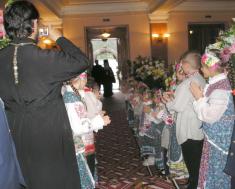 Речи, цветы, подарки (ну, очень дорогие…), песни, танцы… А после, как и полагается, шикарный фуршет. Естественно для избранных. Ломятся столы от яств и напитков… И снова речи, цветы, подарки… Присутствует избранный бомонд: здесь руководители крупных предприятий и частных фирм, чиновники и силовики (благо церковь отделена от государства !), в том числе руководство СБУ, а рядом с ними партийные деятели ПСПУ, КПУ и другие «Ю».