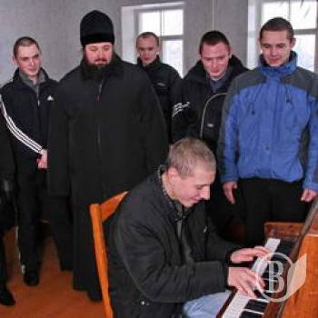 Нужно отметить, что ребята с помощью лома и лопаты очистили территории от льда около собора и честным трудом заработали. А Ермолаев Сергей в ходе экскурсии не смог удержаться, чтобы не сыграть на пианино и гитаре. Он один из активных участников художественной самодеятельности творческих кружков, которые действуют на территории колонии.