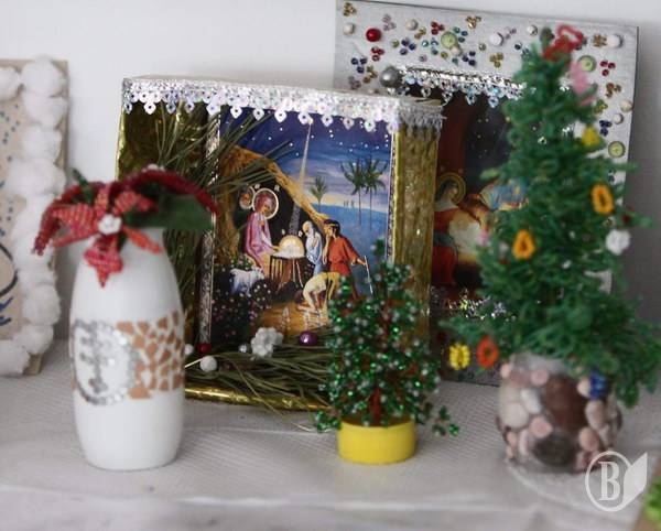 В храме Всех Святых проводится выставка рисунков и изделий учеников воскресных школ черниговских храмов"Рождественский вернисаж". Возраст участников - около 10 лет.