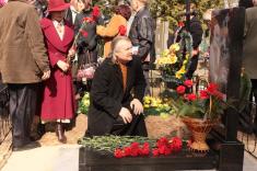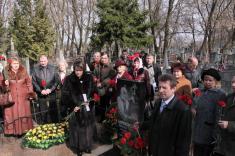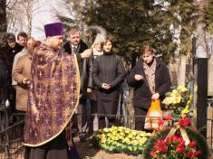Разом з корюківчанами гості побували на могилі Олександра Корнієвського, де напередодні було встановлено новий мармуровий надгробок. На ньому місцевий художник Валерій Козій викарбував майстра у вишиваній сорочці з його улюбленою бандурою, підписав, що він - Почесний громадянин міста Корюківки. Гості поклали квіти до пам’ятника, а місцевий священик отець Тарас освятив його.