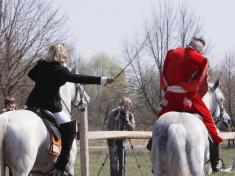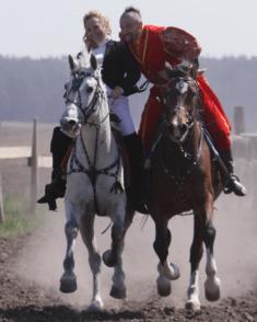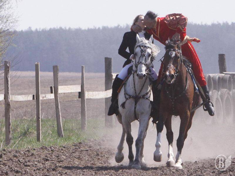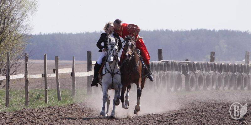 В одном из номеров во время конно-спортивного праздника в Черныше на Черниговщине нужно было на скаку поцеловать женщину наездницу.