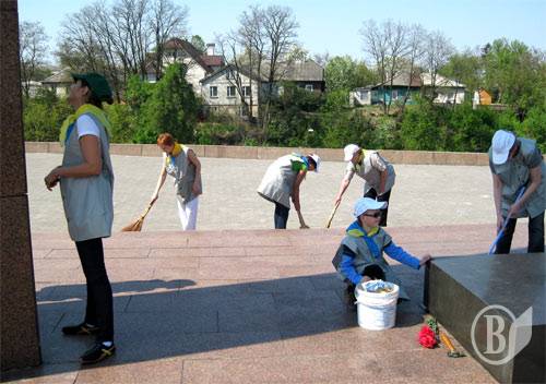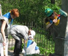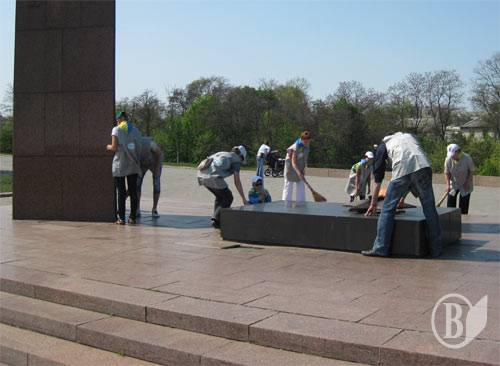 Зелёная молодёжь предусмотрительно прихватила с собой на уборку не только пакеты для мусора, но и сапы, веники, краску (для ограждений захоронений), щёточки и, даже, растворители. Последними вытирали разные надписи и знаки на монументе Неизвестному солдату.