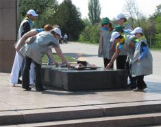 После уборки активная зелёная молодёжь возложила цветы к Вечному огню.