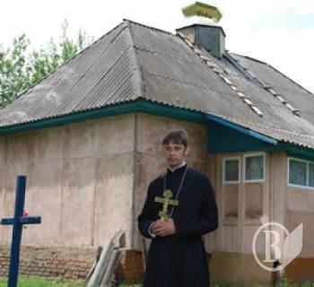 Отець Володимир приїхав до Мени наприкінці минулого літа. Довго не міг знайти приміщення, щоб відкрити храм. Аж поки не натрапив на Будинок бджоляра, вкрай занедбаний. Не було ні електрики, ні опалення. І взимку молодий батюшка захворів на запалення легенів. Дякуючи Богу та нашим лікарям став на ноги дуже швидко.