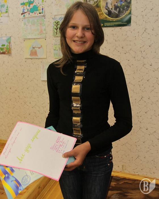 - 1 место -- Кантур Мирослава Юрьевна, 13 лет, Комаровская ООШ I-ІІІ степеней, 6 класс, Борзнянского района, произведение «Будет ли Гилеей наша земля?»;