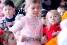 Родители деток тоже не скучают, они весело аплодируют и переживают за своих маленьких сказочных героев. Ведь большинство деток на встречу с Дедом Морозом пришли в замечательных костюмах. Здесь и зайки, и лисички, птенцы и медвежата, здесь самая настоящая зимняя сказка.