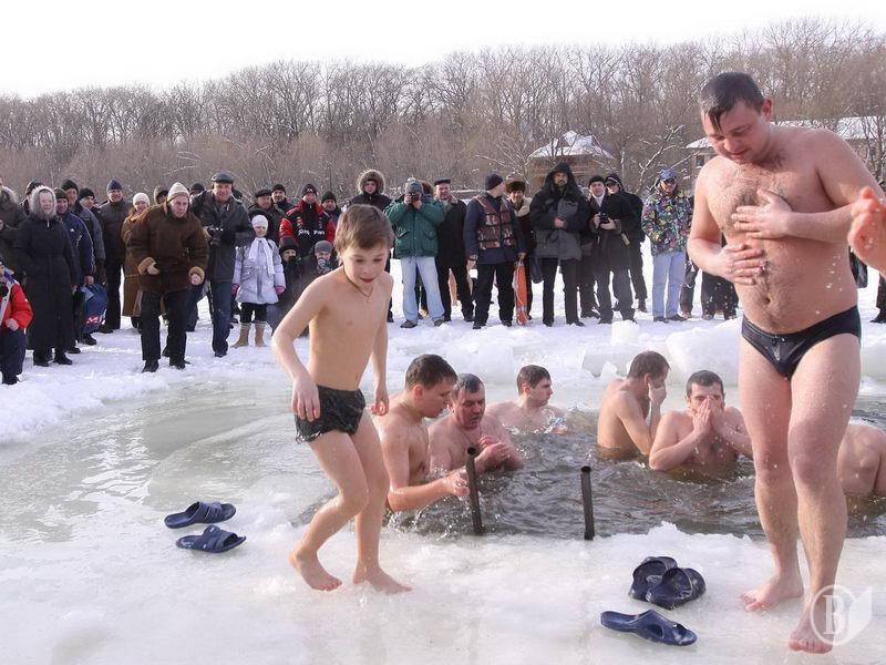 За звичаєм, на Водохреще прийнято тричі зануритися у воду та обов'язково з головою. Вважається, що цього дня, скупавшись на морозі, не захворіють навіть діти.