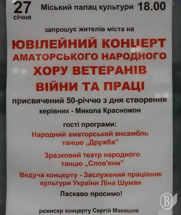 Юбилейный концерт любительского народного хора ветеранов войны и труда, посвященный 50-летию со дня его создания, состоялся вечером 27 января в городском Дворце культуры Чернигова.