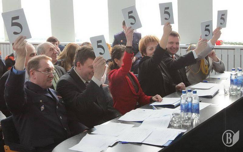 И вот первые оценки. Почтенное жюри оценивало абсолютно все - умение себя презентовать, наряд участниц, умение держаться на сцене. За весь конкурс жюри не поставило ни одной милицейской красавице оценку ниже 4 баллов.