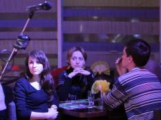 А потім настав час музики. Імпровізовану концертну сцену боулінг-клубу «Світлофор» Олена Іванова розділила з відомими в нашому місті бардами і своїми друзями - Олександром Свириденком, Олександром Барбашем, Андрієм Дерзким та учасниками акустичного проекту «Володар».