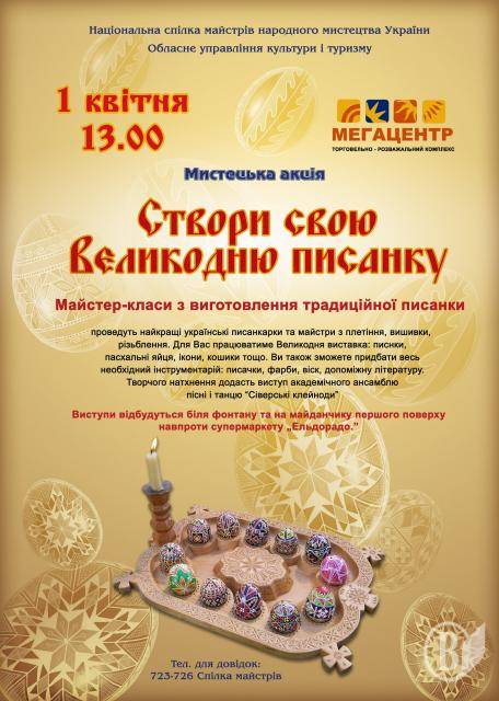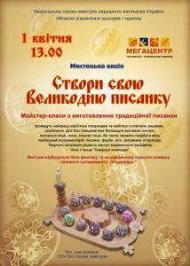 1 апреля в черниговском «Мегацентре» состоится предпраздничная акция: мастер-класс по традиционному писанкарству „Создай свою Пасхальную писанку”.
