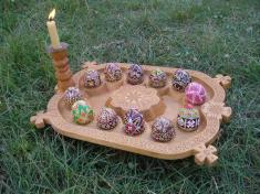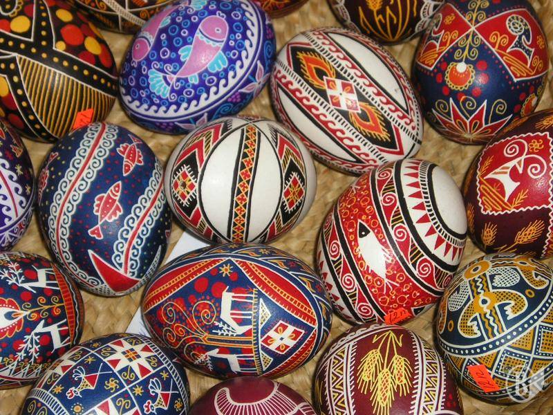 Также к вашему выбору как изысканные традиционные писанки, так и пасхальные яйца из стекла, бисера, расписные иконы, расписные яйца из дерева, а также замечательные изделия из лозы, соломки, дерева.