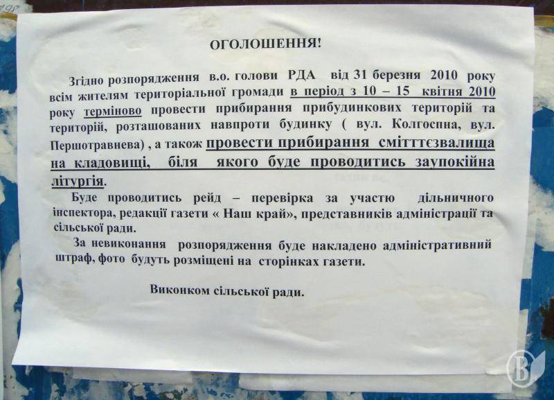 Пока жители Чернигова еще думают, идти на субботник 17 апреля или добросовестно прогулять эту субботу, в селах Черниговского района уже длятся рейды-проверки в исполнении милиции и газеты.