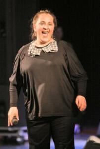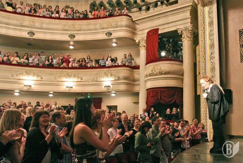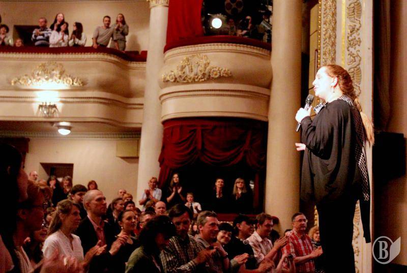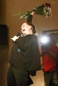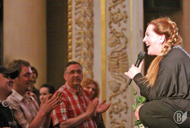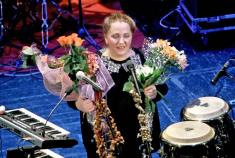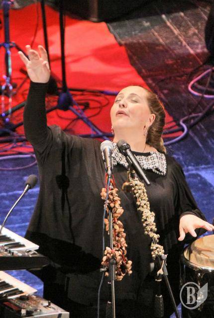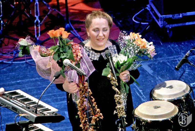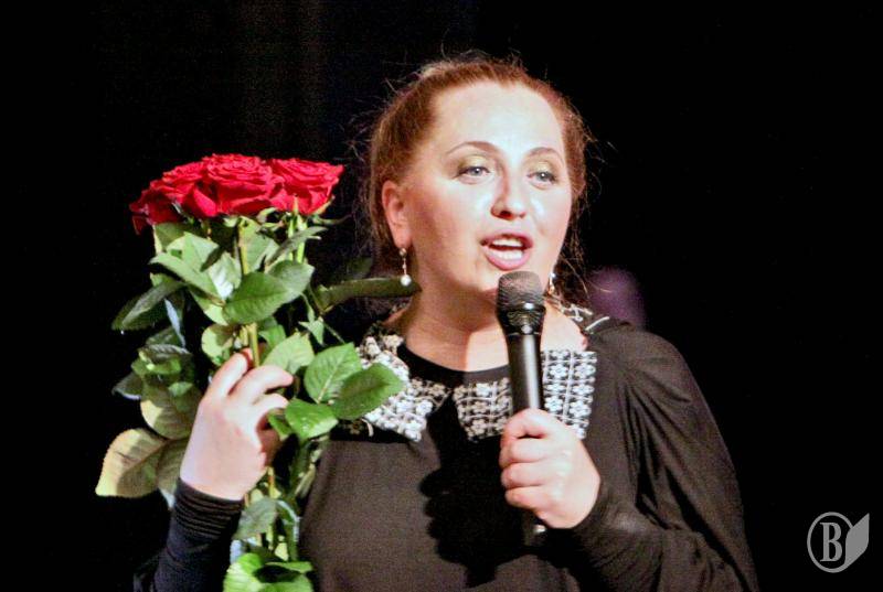 Переповнений зал аплодував стоячи, засипавши виконавицю квітами.