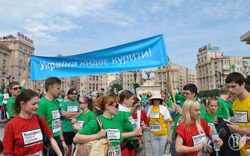 Команда под названием „Украина бросает курить” агитировала за популяризацию здорового способа жизни и призывала киевлян освободиться от курения.