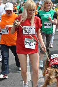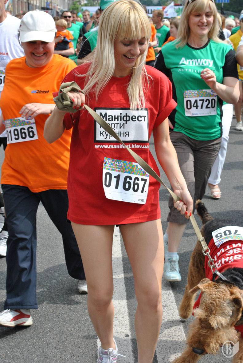 Перед стартом активисты антитабачного движения развернули плакаты с надписями: „Киев бросает курить, Киев начинает бегать!”, „Развеем сигаретный дым под каштанами!”, „Меняем сигареты на кроссовки!”