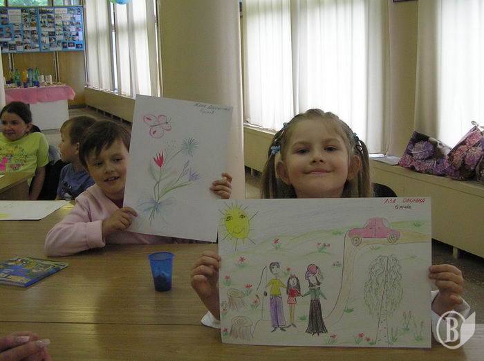Для наймолодших учасників Діми Федченко і Олександри Потій навколишній світ це: «мама, тато, я», а також метелики, квіти, пташки. Діти, яким вже виповнилося по 6-7 років, окрім родини, намалювали подорожі, улюблених тварин, казкових героїв. На малюнку шестирічної Марії Тростянської тримається за руки уся дружна родина.