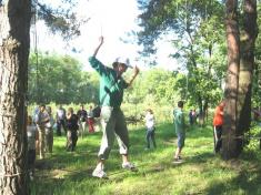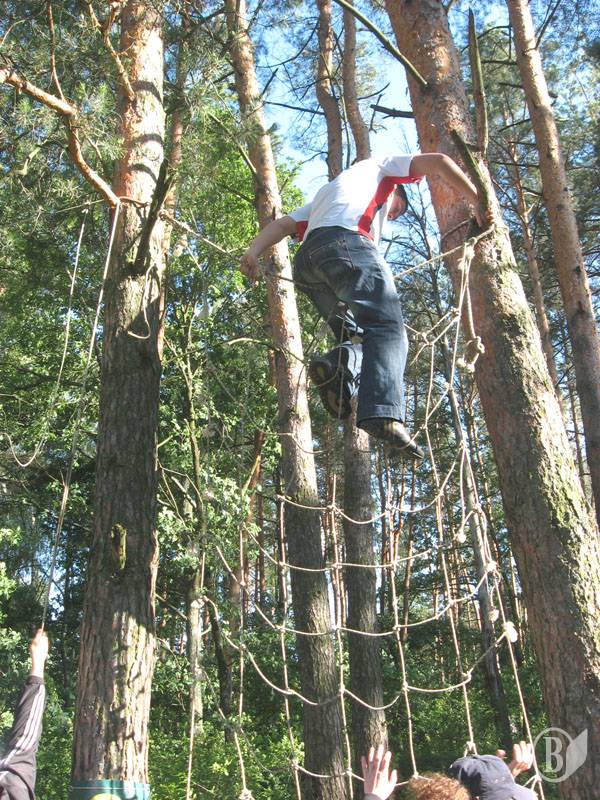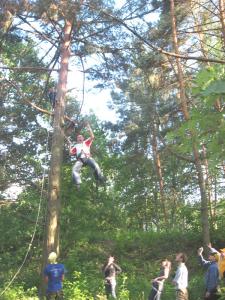 Після висадки на берег гості туристичного форуму ознайомилися з іще однією розвагою, яку туристам Чернігівщини пропонує рятувальна служба "SOS". З ентузіазмом вони виконували непрості вправи на натягнутих між деревами мотузках і навіть стрибали з височенної сосни.