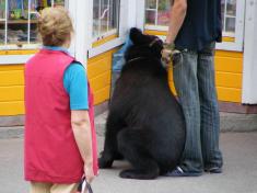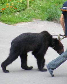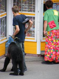 Втім, ведмідь виявився тварюкою достатньо культурною. Він ходив по вулиці, як і належить звірам, у наморднику і з поводком. Не те що переважна більшість псів у нашому місті.