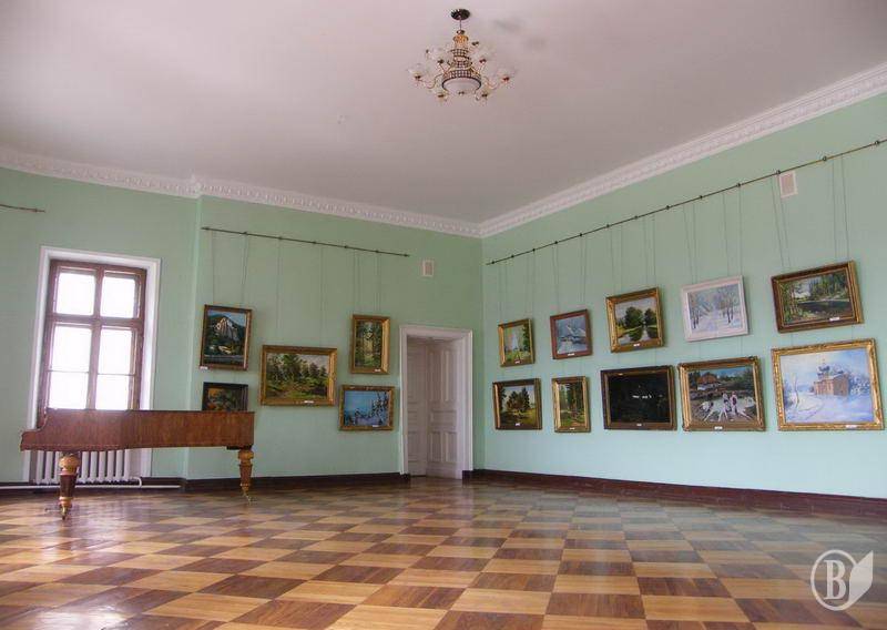 На першому поверсі палацу в Качанівці розташована виставка картин художника Юрія Олексійовича Борща. На виставці представлено роботи різних років.