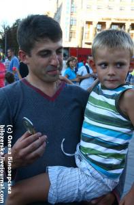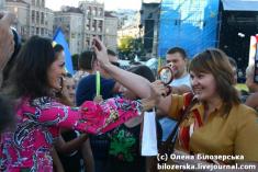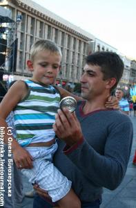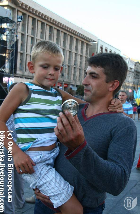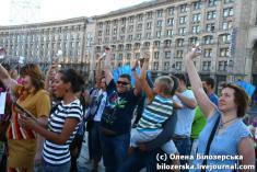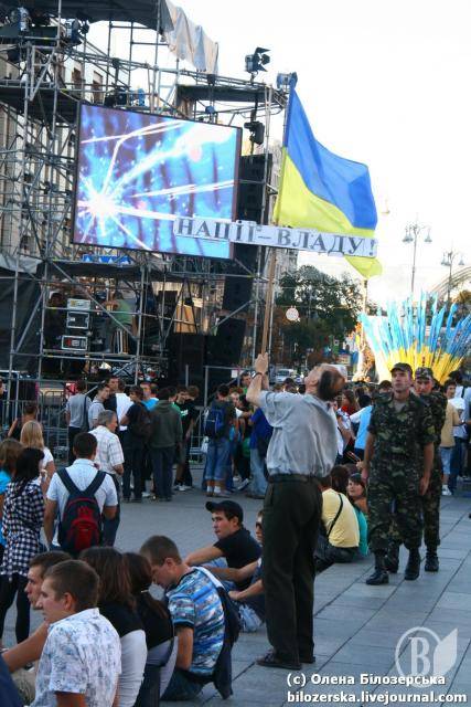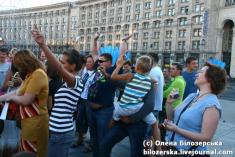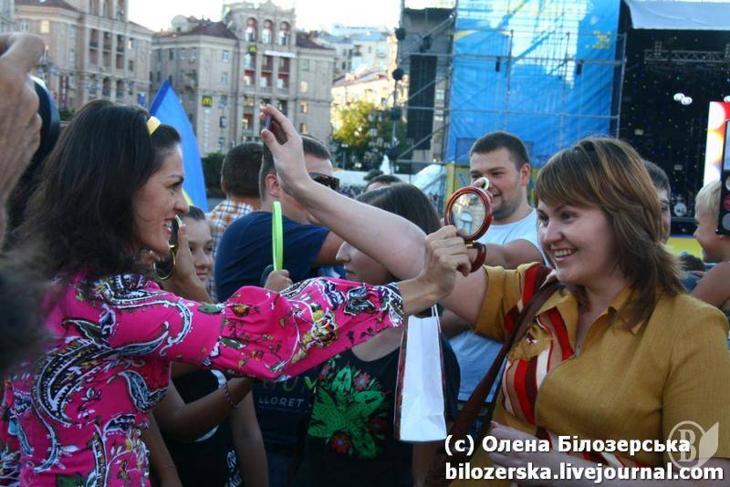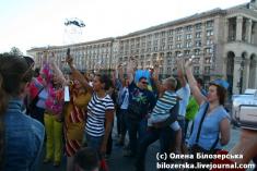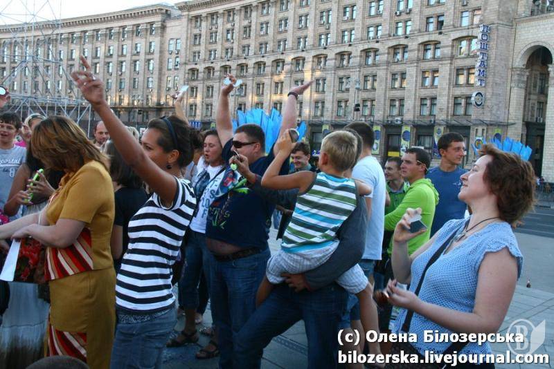 В столице на Площади состоялся флешмоб ко дню независимости Украины. Согласно замыслу, он длился всего лишь немногим больше 20 секунд и заключался вот в чем: когда часы на Доме профсоюзов пробили семь часов, все участники посмотрели на себя в зеркальце и громко сказали: