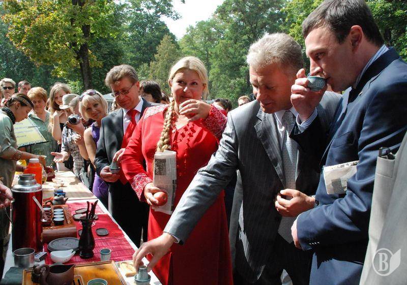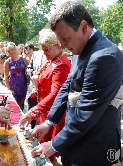Під час свята-ярмарку квітів та плодів «Щастя краси» у Центральному парку культури та відпочинку чернігівський міський голова Олександр Соколов та голова Чернігівської обласної ради Наталія Романова взяли участь у своєрідній «чайній церемонії».