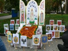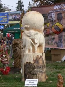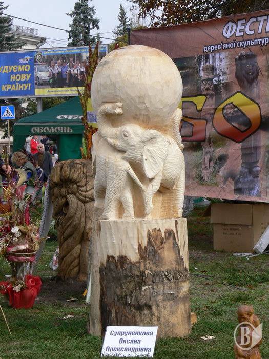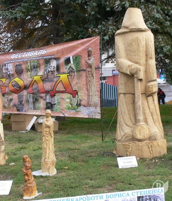 На туристическо-художественной выставке представлены и деревянные скульптуры участников фестиваля "Болд", в котором в этом году приняли участие 9 мастеров, в том числе и русские резчики. По завершению празднований изготовленные скульптуры будут украшать парковые зоны Чернигова.