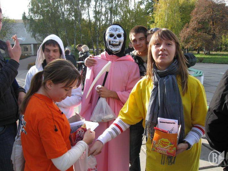 Під час акції волонтери обмінювали у студентів сигарети на цукерки. Для тих хто не хотів обмінювати цигарки і продовжував палити, невтомно працював інший персонаж – «смерть з косою». Вона підходила до найвпертіших студентів і вже власним страшнуватим виглядом показувала молоді, до яких наслідків може привести їх згубна звичка, «змушуючи» студентів все ж таки обирати цукерки.