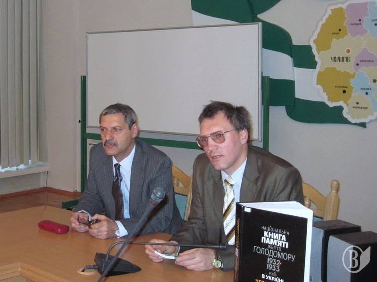 Він ознайомив присутніх з виданнями Центру про цю подію, зокрема зі збірником матеріалів «Голодомор 1932-1933 рр. в Україні очима дослідників і свідків: Чернігівщина» (2008).