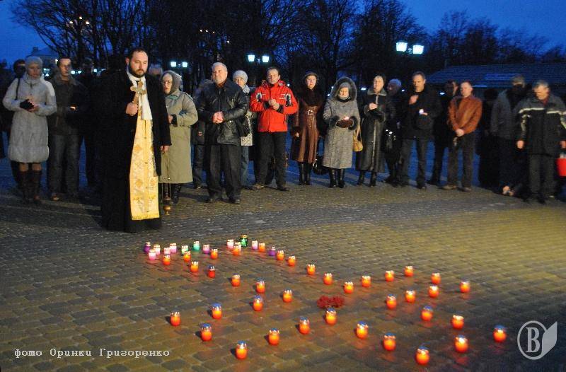 Прийшли на площу, під Собор Різдва Пресвятої Богородиці, щоб розкласти на ній хрест із лампадок, щоб відбути панахиду за душі замордованих тодішньою терористичною владою СРСР, щоб викласти свічечками гірке слово "Геноцид".