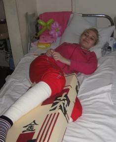 Минув тиждень після операції, а Машенька вже пересувається на милицях(!), з нею працює фаховий фізіотерапевт.