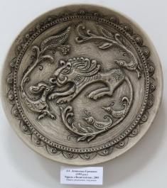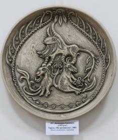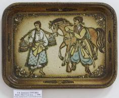 Оглядаючи виставку, ми потрапляємо в чарівний світ Дегіисенкової глиняної пластики – великих декоративних тарелей, сюжетні теми яких присвячені народному фольклору („Копав, копав криниченьку", 1982р.; „У неділю рано зілля копала", 1982 р.). Пласт - мініатюра та куманець „Дума" (1977 та 1983 р.) розповідає про народного героя-улюбленця Козака-Мамая. Архітектурі Чернігова присвячено вазу (глек) «Старовинні мотиви» ( 1985 р.).