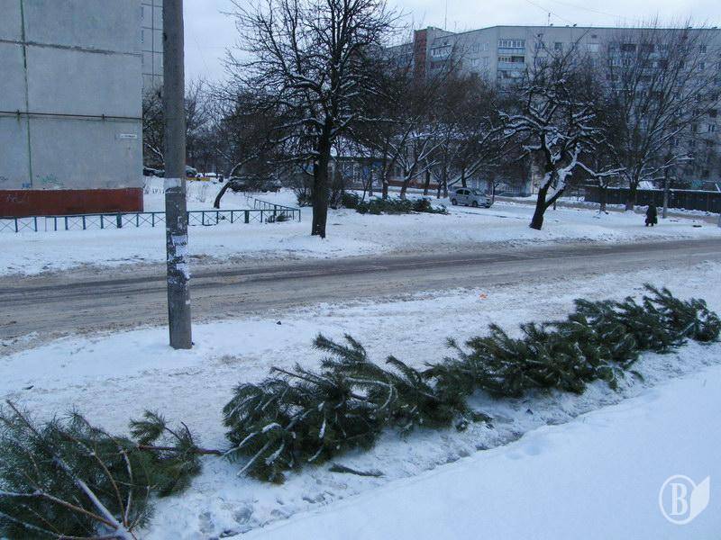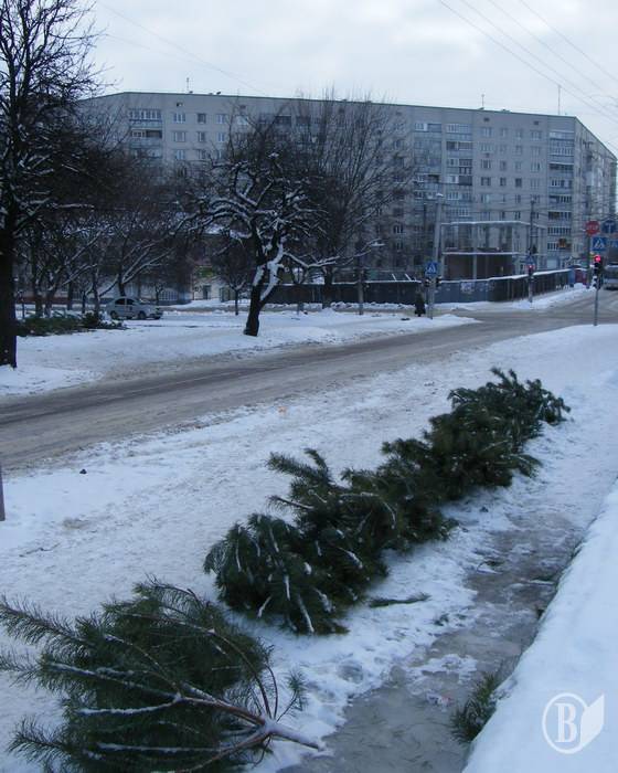Сьогодні вранці, 1 січня 2011 року, вулиці Чернігова закидані купами сосен. Навіть у центрі міста.