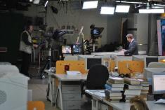 А от третій етап - це була екскурсійно-навчальна поїздка в Київ, на канал ICTV. І ось про неї більше... Нас допустили на засекречену територію, яка охоронялася неначе військова база, тільки у охоронців пістолетів не видно було. Групу представників прилуцьких ЗМІ зустріла дуже приємна дівчина Юлія Бондаренко – керівник прес-центу на ICTV. На час екскурсії вона була нашим провідником. Розмістивши нас у конференц-залі, Юлія розповіла про створення каналу, самий початок його історії: що перший ефір відбувся у 1992 році й від самого початку ICTV постав як розважальний телеканал. Саме на ICTV стартували перші іноземні фільми та серіали з дубляжем українською мовою. Далі, у 2000 році, зі зміною директора каналу, почався новий етапу його розвитку: ICTV перетворюється у цілеспрямовано інформаційний з вкрапленням серіалів про «ментів», військових і т.д. через що отримує репутацію «чоловічого» каналу. Аудиторія збільшилася у три рази, тож так і продовжують розвиватися.