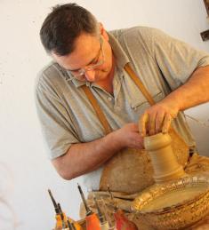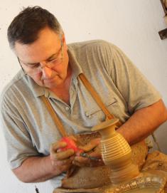 Уточнюю: закоханий у свою справу. В його умілих руках шматок глини перетворюється на граціозну вазу, тендітну, як жіноча фігурка. Або міцну, як загартована працею і слов’янською їжею селянка.