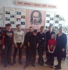 Із зацікавленістю діти слухали повідомлення про маловідомі сторінки української історії, літератури, культури, пісні на слова Кобзаря. Дивилися альбом репродукцій з картин Тараса Шевченка і на пам’ять сфотографувалися разом з класним керівником у шкільному куточку з літературним матеріалом про великого поета.