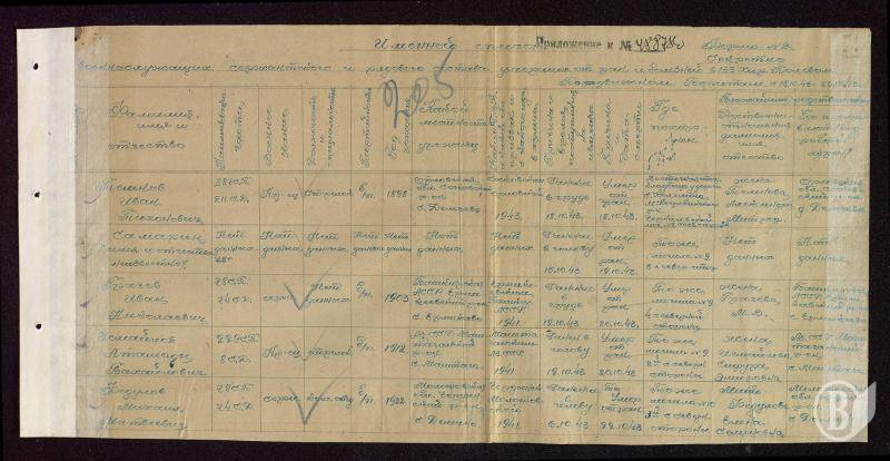 У більшості випадків в анкетних даних госпітальних документів збереглись адреси воїнів. Тож простий перелік місць народження і вказана кількість призваних до армії (більше одного позначається цифрою) нехай стане черговим підтвердженням того, що на олтарі Перемоги у Великій Вітчизняній війні знаходяться життя представників багатьох народів колишнього СРСР: