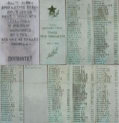 Взявши ці списки та прізвища з мармурових дошок Меморіалу, я порівняв їх з матеріалами інтернет-сайту «ОБД-Меморіал» і списками, отриманими з Архіву військово-медичних документів (м. С.-Петербург). В результаті отримав уточнену кількість захоронених, біографічні дані, і, якщо можна так сказати, розставив точки над «і» стосовно деяких спогадів місцевих жителів.