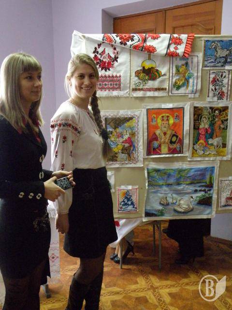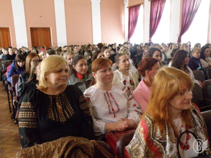 Із самого ранку коридори університету заповнили студенти у святкових вишиванках, розпочала свою роботу виставка вишивки. Серед її експонатів — вишиті ікони, рушники та сорочки.
