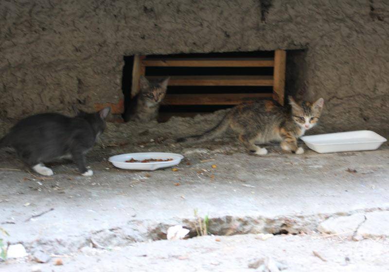 Діти і дорослі, що живуть поруч, носять їм під будинок їжу і воду. Але домашнього тепла, як бомжі та безпритульні, кошенята не мають.