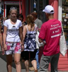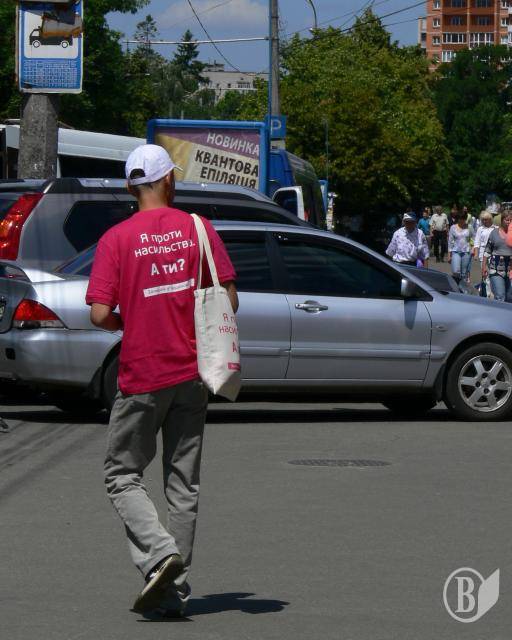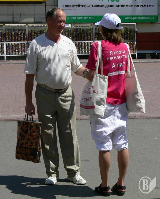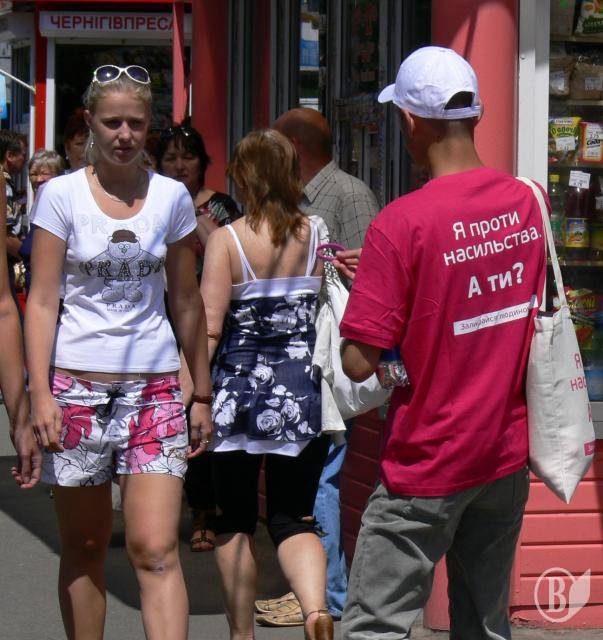 Молоді хлопці і дівчата - волонтери проекту Євросоюзу «Права жінок та дітей» вийшли на вулиці Чернігова.