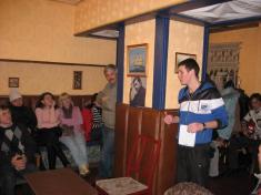 Постійним членам клубу було приємно бачити й чути виконавців, які вперше завітали в Арт-клуб "на вогник" і відразу потрапили "з корабля на бал" - Олексія Зубенка та Ігоря Левденка (останній нещодавно переїхав у Чернігів з Дніпродзержинська). Їх, у свою чергу, теж порадувало, що в місті є такий творчий осередок, де можна відвести душу і знайти вдячних слухачів.