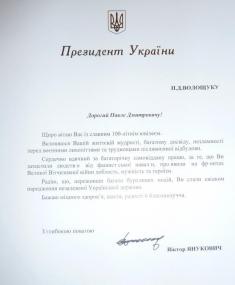 Зі 100-річним ювілеєм Павла Дмитровича привітав особисто Президент України Віктор Янукович, подякувавши за «мудрість, самовіддану працю, мужність і героїзм».